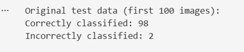 Before launching any attack, the classifier is evaluated on clean test samples to establish a baseline performance reference. In the experiment, the model correctly classifies almost all samples, confirming that the model is functioning as expected prior to adversarial manipulation.