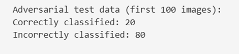 Once adversarial images are generated, the classifier is evaluated again. The results clearly demonstrate a drastic performance degradation, even though the images appear unchanged to human observers.
